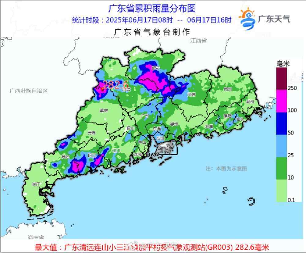 广东局地24小时雨量超过500毫米,17日白天多地雨量突破250毫米