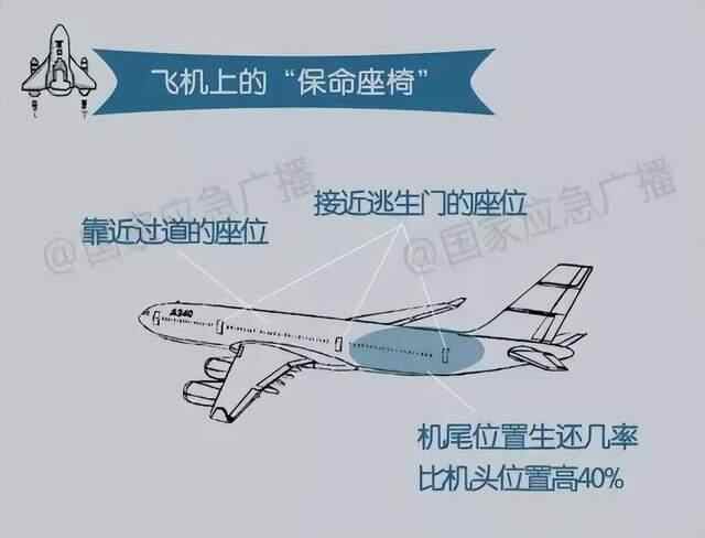 通常来说,遇到火灾时,坐在机舱安全门附近的乘客更容易逃生。此外,美国《大众机械》月刊曾根据统计数据得出结论认为,从整体上看,在飞机事故中机舱后部乘客的存活率略高于中部及前部,但这只是一家之言。
