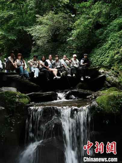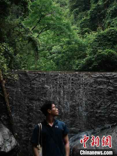6月15日,游客在贵州江口县亚木沟风景区游玩拍照。中新社记者 周燕玲 摄