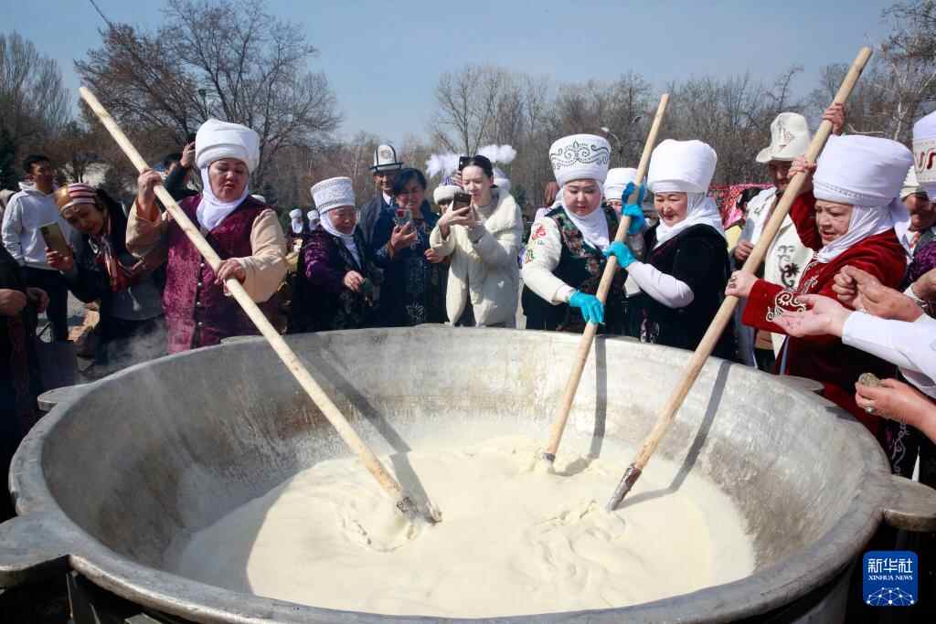 2023年3月20日,在吉尔吉斯斯坦首都比什凯克,人们制作特色食品庆祝纳乌鲁斯节。纳乌鲁斯节(又称诺鲁孜节)是中亚国家最重要的传统节日之一,标志着春天的到来和新的一年开始。