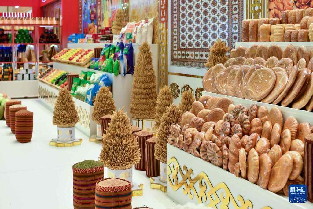 这是2023年11月28日在土库曼斯坦首都阿什哈巴德农业博览会上展出的馕。