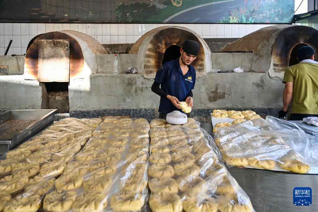 2024年8月27日,在乌兹别克斯坦首都塔什干,厨师制作馕。