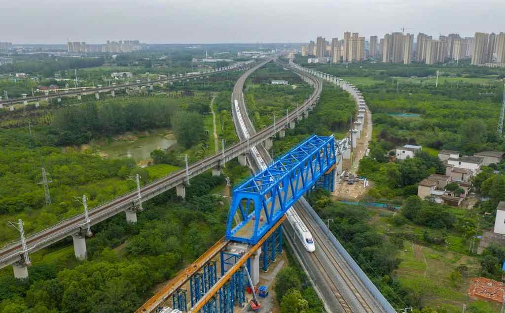 新建沪宁合高铁千吨钢桁梁顺利跨越沪蓉铁路