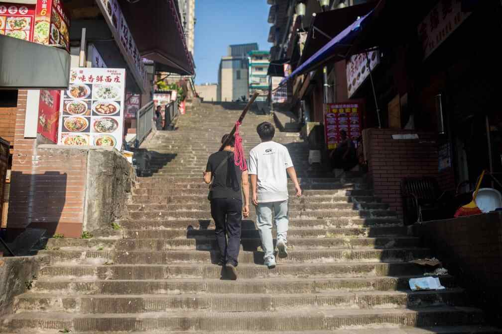 ↑2025年6月14日,冉光辉(左)和冉俊超走上石阶。