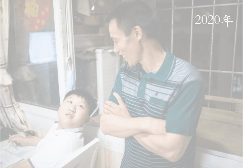 ↑2020年6月9日,冉光辉在自己的房子里默默看着儿子写作业。