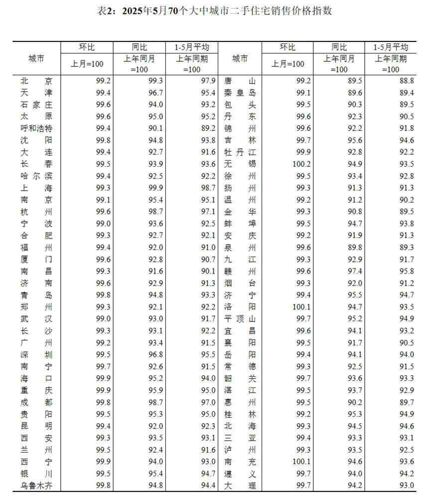 5月份,一线城市二手住宅销售价格环比下降0.7%,降幅比上月扩大0.5个百分点。其中北京、上海、广州和深圳分别下降0.8%、0.7%、0.8%和0.5%。二、三线城市二手住宅销售价格环比均下降0.5%,降幅均扩大0.1个百分点。