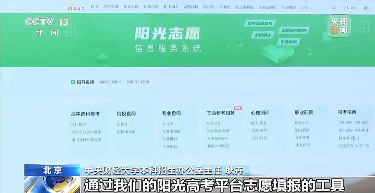 中央财经大学本科招生办公室主任 耿卉:通过我们的阳光高考平台志愿填报的这个工具,包括还有一些社会上免费的工具,我们都能够很容易根据自己预估的位次,先对高校进行一个大概范围的框定。