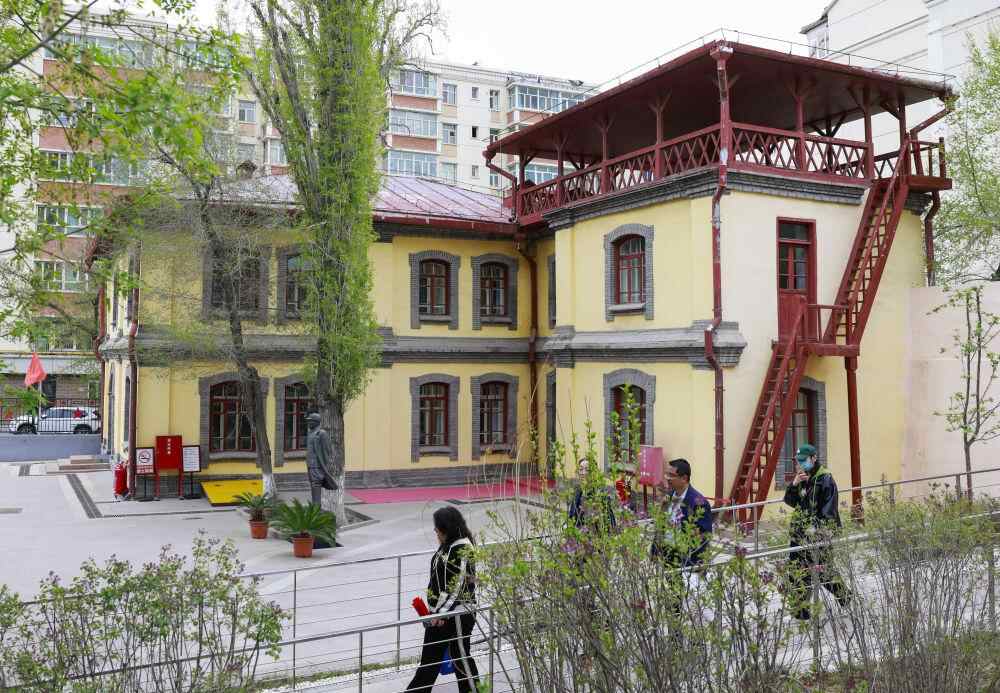 红顶黄墙,青砖围腰,一座风格别致的二层小楼,静静矗立在乌鲁木齐市胜利路392号。