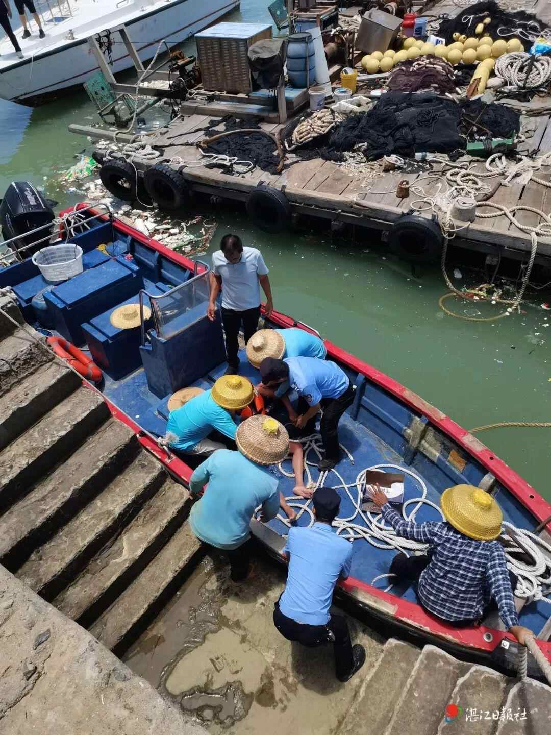时间一分一秒地流逝,每过去一分钟,朱某寒父亲生存的希望就愈发渺茫。然而,奇迹总是会眷顾那些不放弃的人。5小时后,在湛江角尾乡附近海域一处空置的网箱上,搜救人员终于发现了朱某寒的父亲。