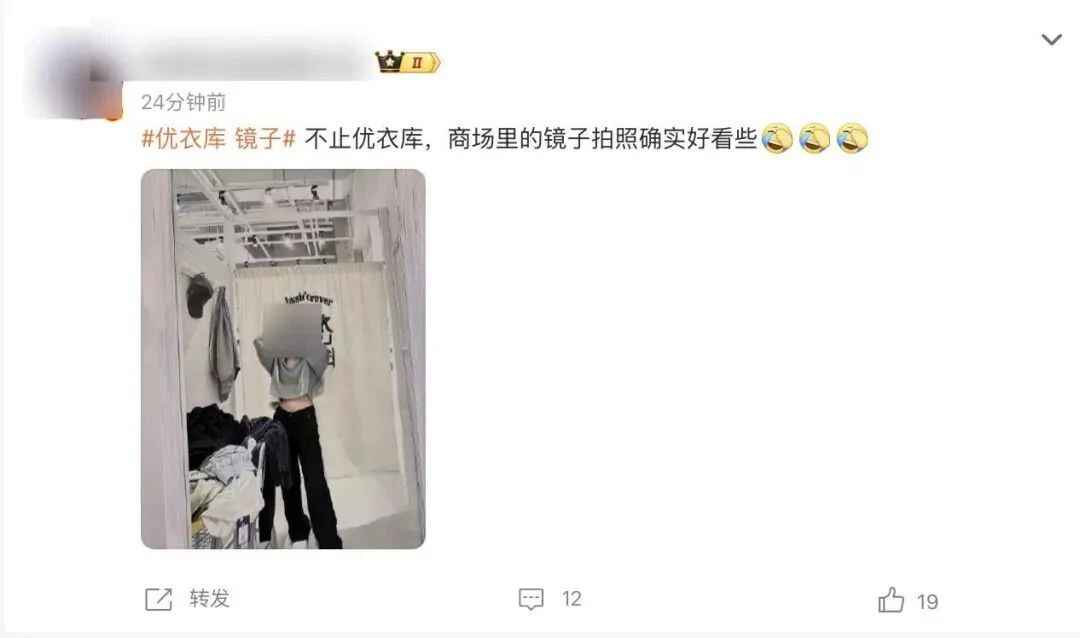 有网友直言,镜子不仅有色差,而且还显瘦。还有网友认为,不止优衣库,其他商场服装店里的试衣镜拍照也显得更好看一些。