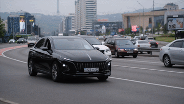 哈萨克斯坦阿拉木图街头行驶的中国产新能源汽车。