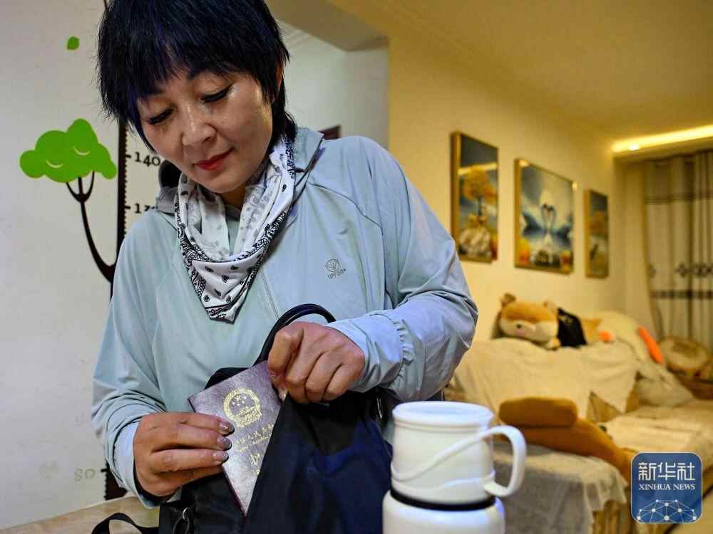 高云在执行运车任务前,在新疆霍尔果斯家中把护照装入背包中(6月9日摄)。