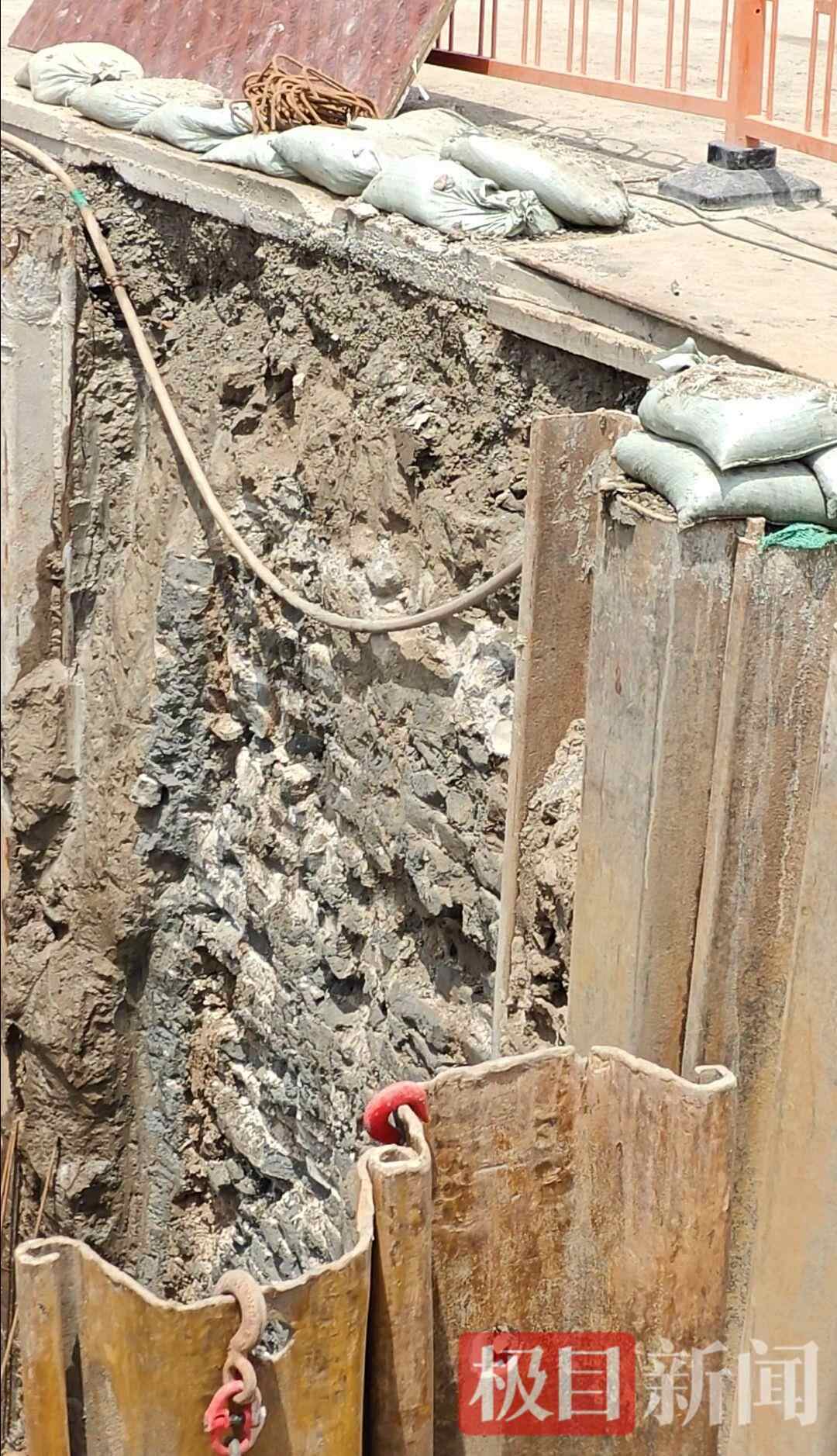 在围挡内的施工现场,记者看到大坑里确实有很多老旧墙砖,坑壁周围还竖立着许多钢板桩,以防止大坑发生坍塌。不少市民闻讯赶来拍照围观。施工现场人员告诉记者,这些老旧墙砖是5天前被挖出的,有文物部门工作人员已经来调查研究过,确认是古代城墙遗址,以前在施工挖掘现场也挖到过类似古城砖。
