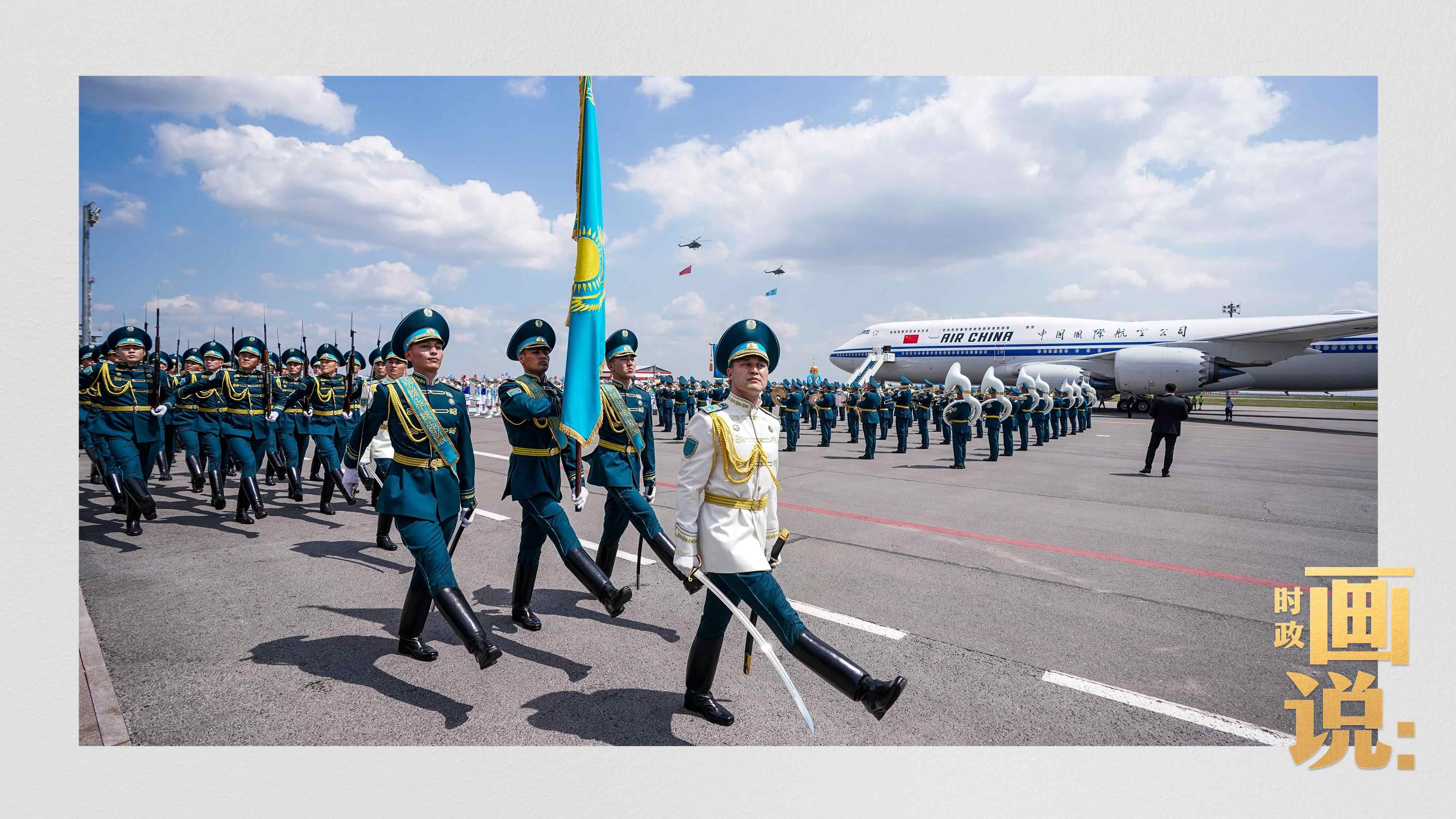 哈萨克斯坦总统托卡耶夫亲赴机场迎接习近平主席。