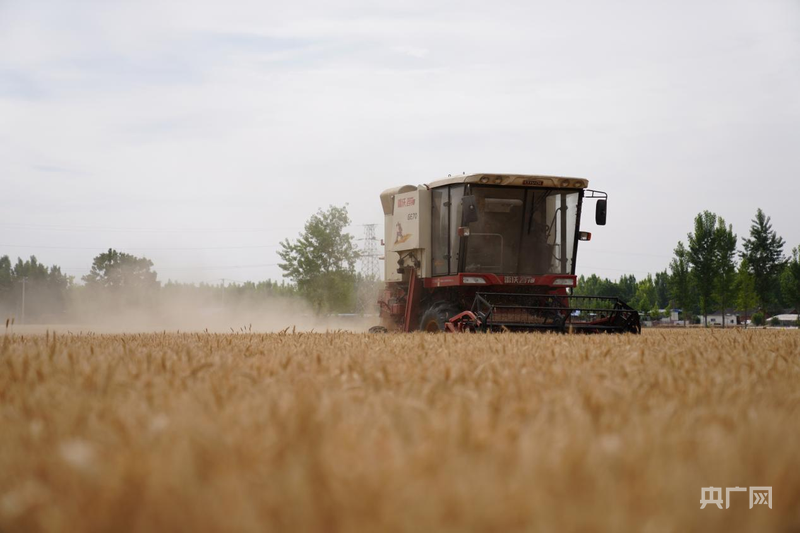 农机手在操作收割机收获小麦(央广网发 韩田田 摄)