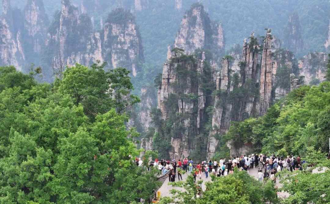 5月18日,湖南张家界国家森林公园景区,游客在领略世界自然遗产的壮丽景观。吴勇兵摄(中经视觉)
