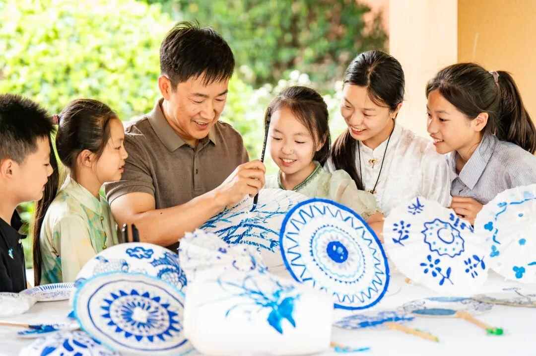 6月11日,江苏南通市海安经济开发区实验小学开展“共绘青花古韵”非遗体验活动,迎接“文化和自然遗产日”。翟伟凯摄(中经视觉)