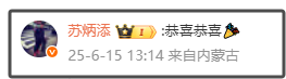 对此,中国田径短跑运动员苏炳添第一时间在评论区送上祝福。