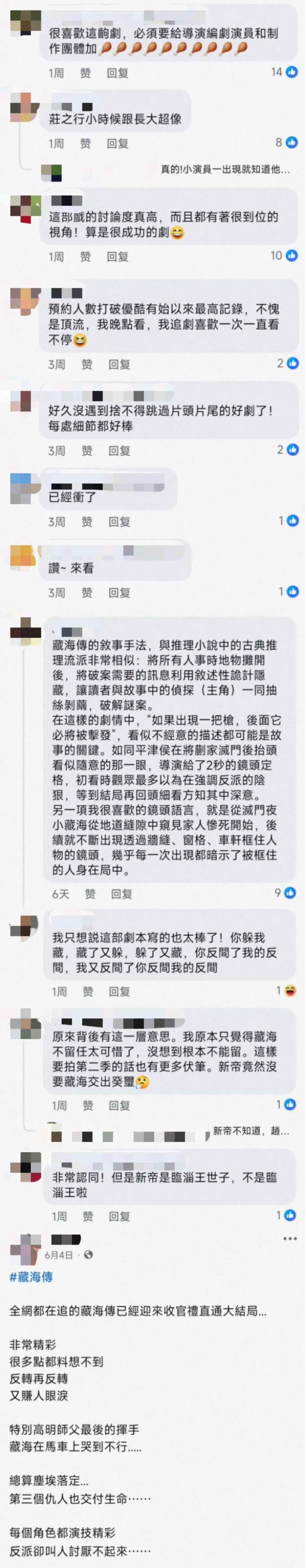 打开台湾社交网站,能看到许多网友对《藏海传》的分析和赞誉