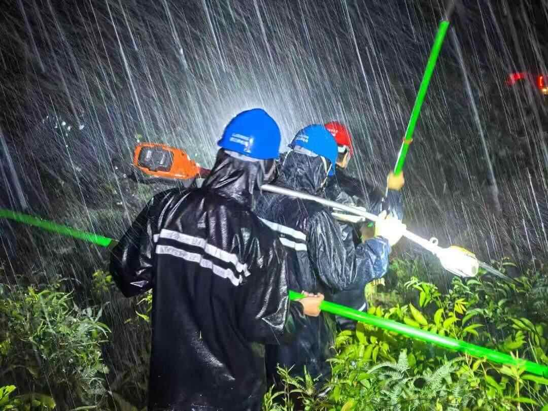 6月14日下午,广东茂名电白区遭遇特大暴雨,导致那霍镇325国道边一棵大树被连根拔起,阻断了交通,也直接威胁电网安全。面对险情,南方电网广东茂名电白供电局那霍供电所所长张业生带领抢修人员在暴雨中逆行,一方面联合政府切割树干、清理断枝,同时紧急隔离故障线路,防止短路停电。经过政企合力,一个半小时后,道路恢复了畅通。