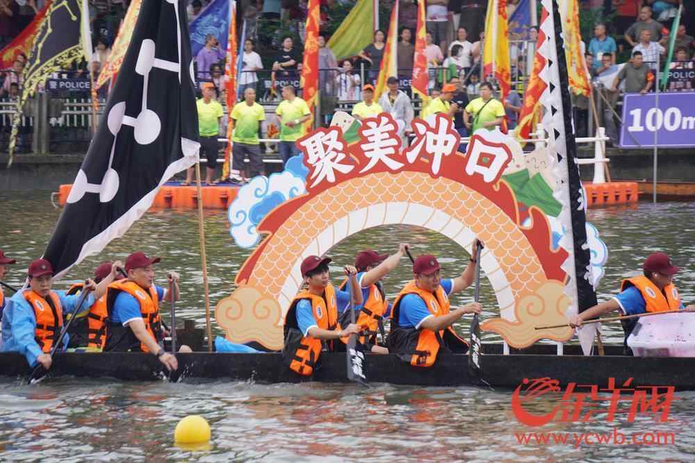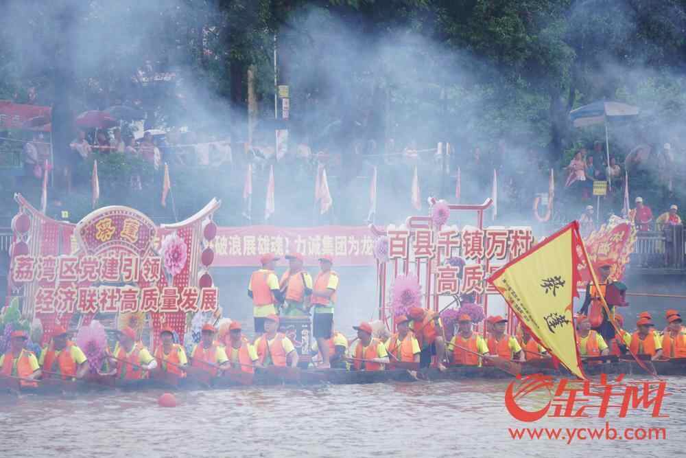 “荔湾有景,山村至醒”“仁威精神,无所不能”“聚美冲口,幸福坑口”……当“彩龙”经过主席台,每个龙船队都喊出了响亮的口号,展现区域发展的精神风采。