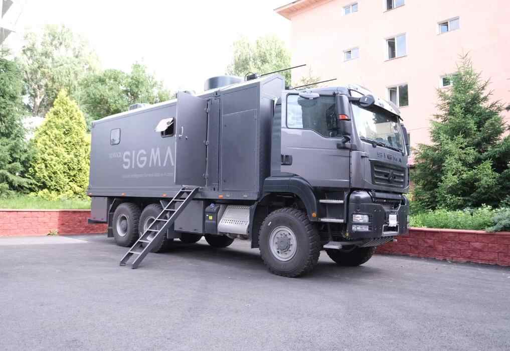 6月2日,哈萨克斯坦国家农业研究型大学校园内停放着中哈双方联合研发的“西格玛应急指挥车”。新华社记者张爽摄
