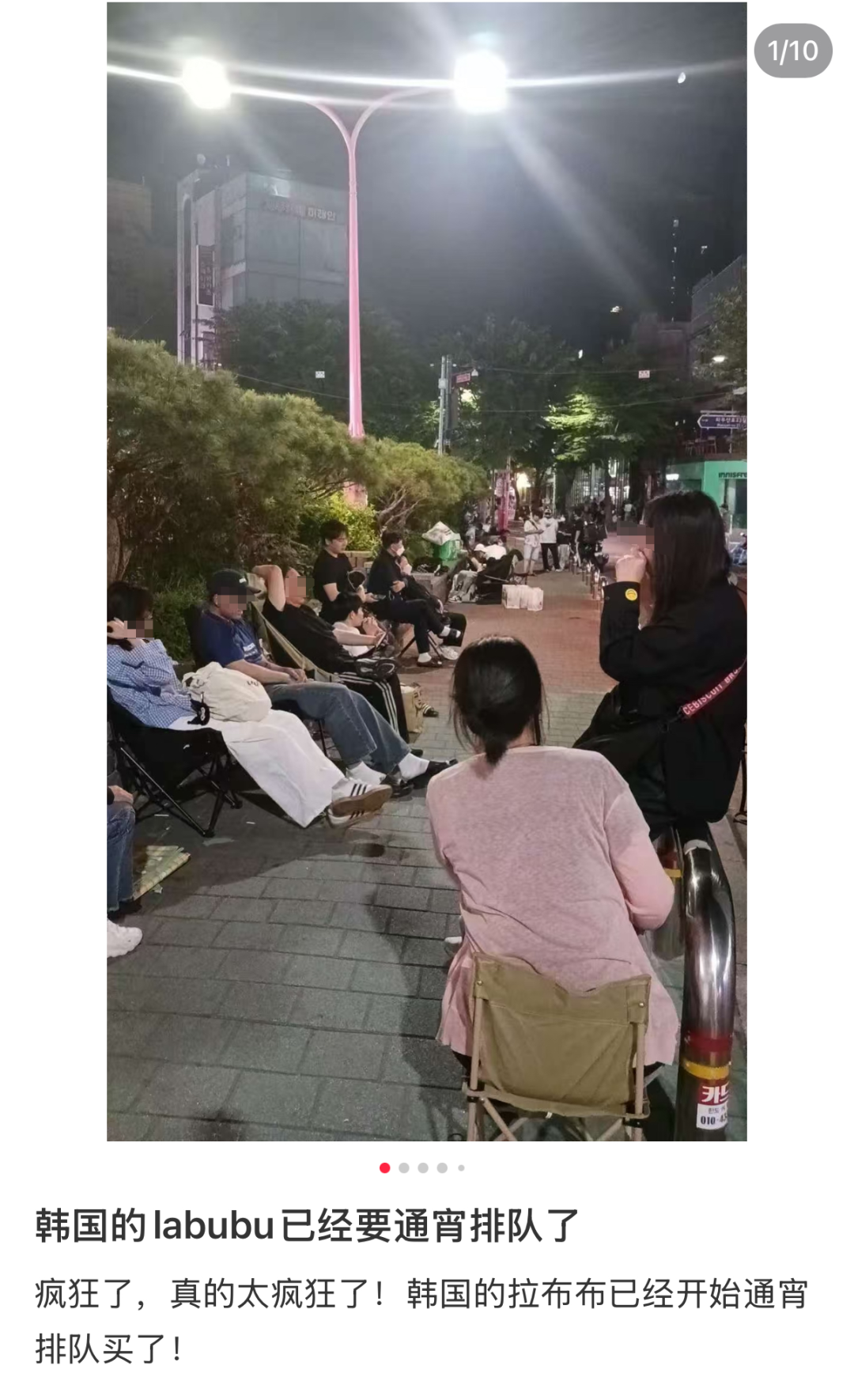 据点时新闻报道,在韩国首尔生活的宋女士拍下了泡泡玛特明洞店营业前,顾客排起长队、甚至不少人夜排的场景。宋女士称,前几个月都还没这么多人,最近开始顾客大量增多,甚至不少人带着帐篷褥子夜排。店里有很多IP但许多人都是为了LABUBU而来,排队的不仅有中国人也有许多外国人,宋女士称看到祖国的品牌广受认可觉得非常自豪,另一方面也希望大家能理智购物。