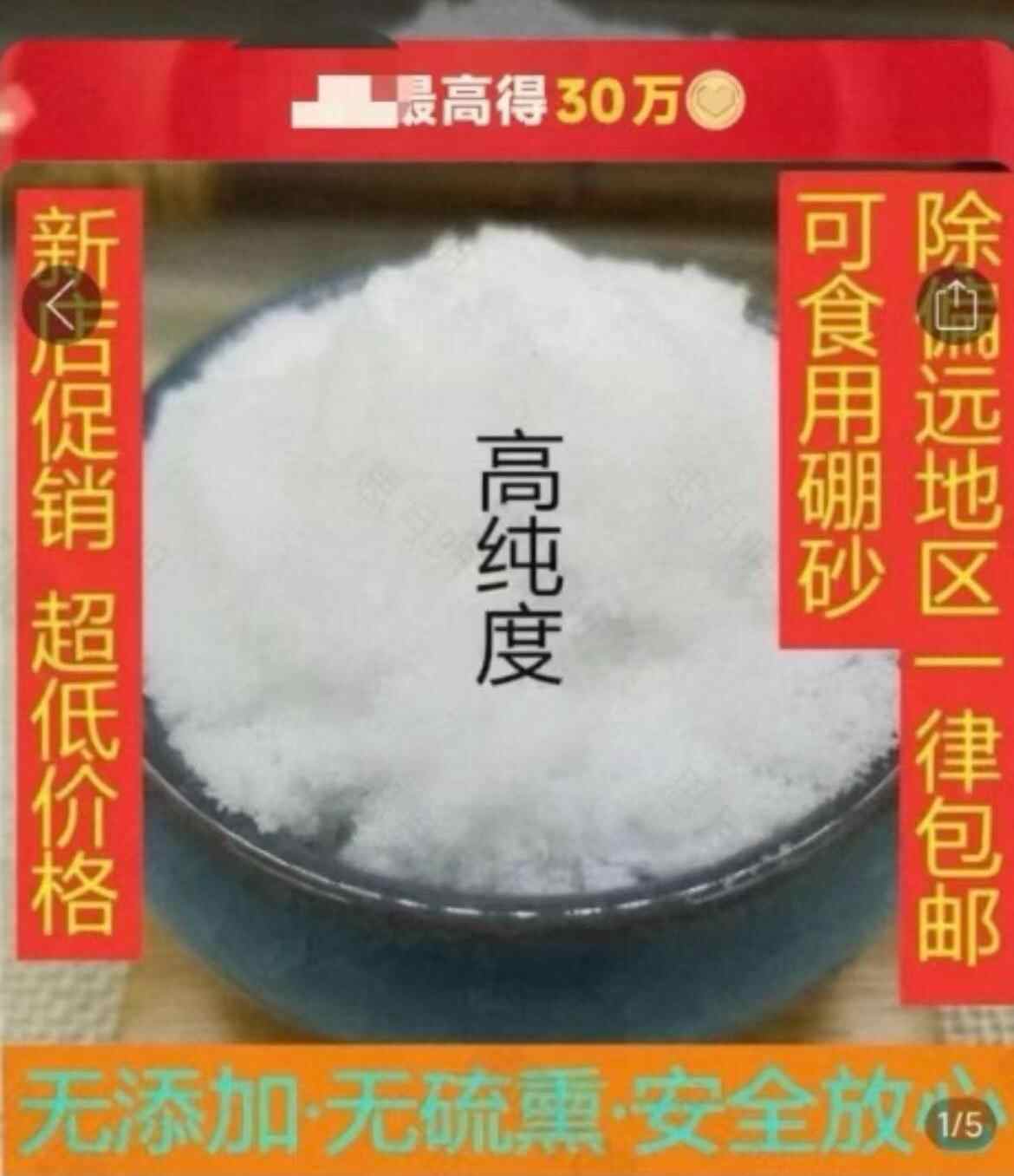 网友反馈,电商平台出现“可食用硼砂”产品。