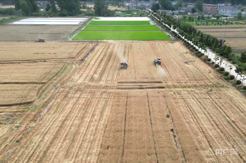 连云港海州区的收割现场(央广网见习记者 吕倩媛 摄)