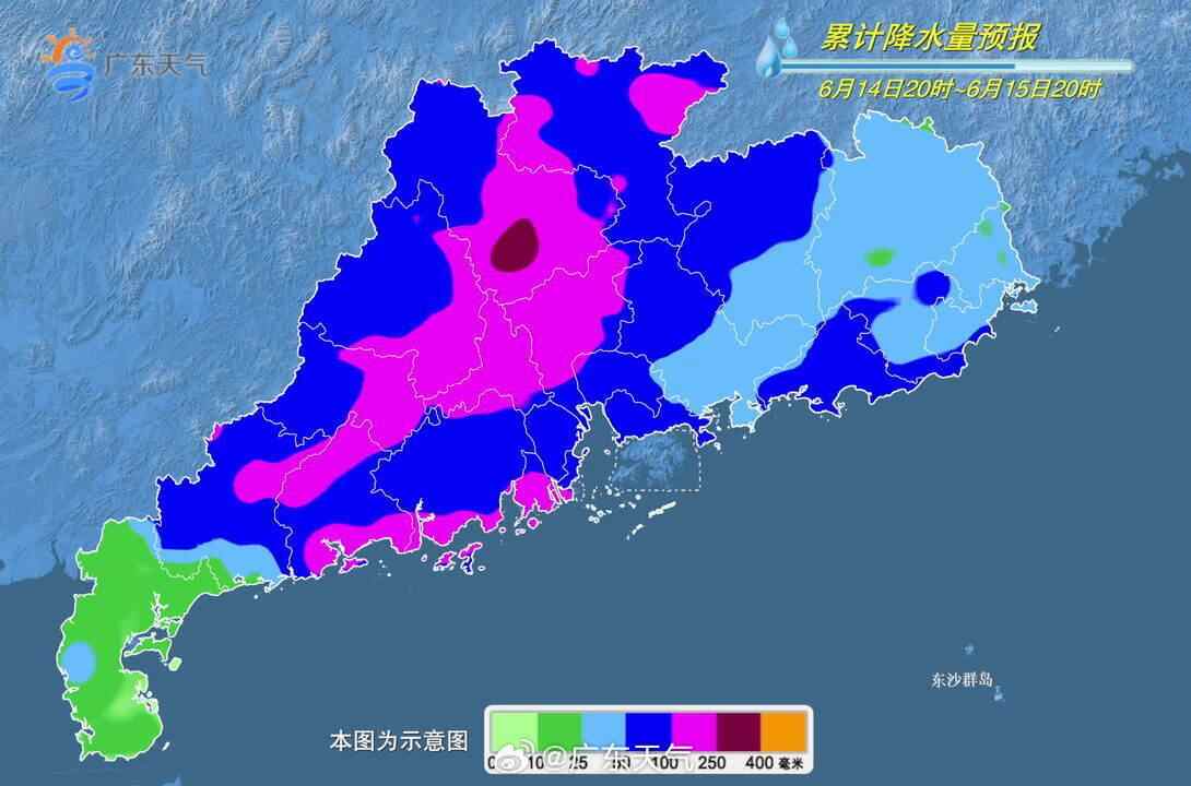 15日,粤北、珠江三角洲北部、粤东市县有暴雨到大暴雨,局部特大暴雨,其余市县中到大雨局部暴雨。