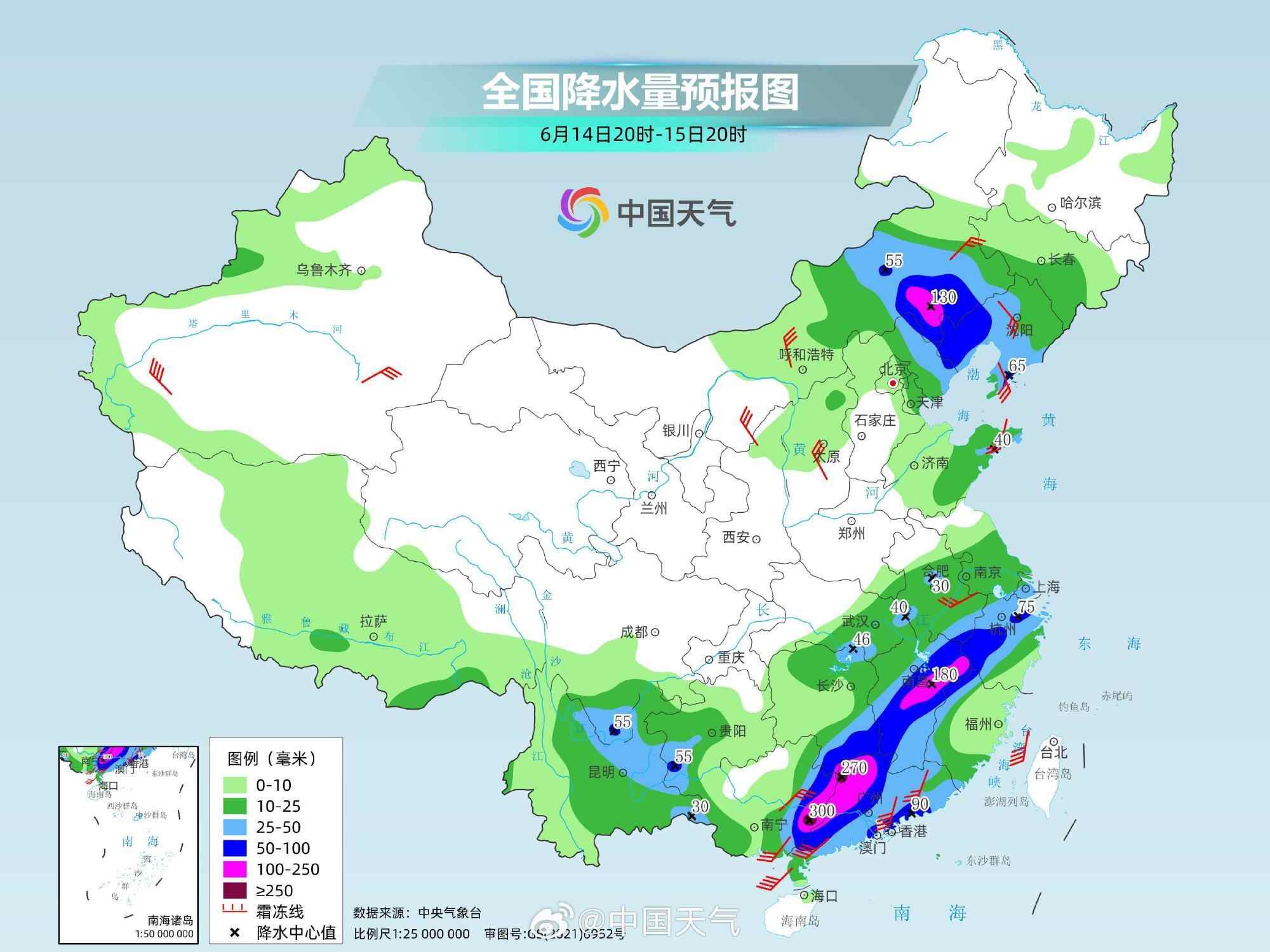 中央气象台预计,今天,华南中东部、江南中东部等地有大到暴雨,其中,广西东部、广东西部和北部、湖南东南部、江西中北部等地的部分地区有大暴雨,局地特大暴雨。16日至17日,南方的降雨将整体减弱,但在江南南部、华南等地仍会有中到大雨,局地暴雨。