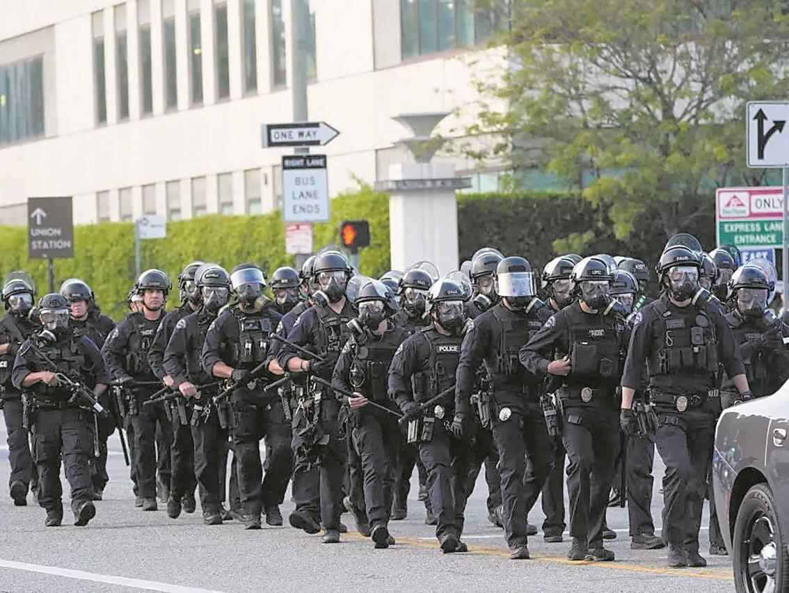 美国移民与海关执法局(ICE)等联邦机构执法人员6日搜捕非法移民,突袭洛杉矶市至少7处地点,包括购物中心和工厂,逮捕44人。行动中,执法人员遭到当地社区居民围堵,不断发生肢体冲突。当晚,大约500名抗议者聚集在洛杉矶市中心,举着“ICE滚出洛杉矶”等标语,试图冲击一处拘留所,与前来维持秩序的洛杉矶当地警察发生冲突。警方使用警棍、催泪弹和橡皮子弹驱散抗议者,抗议者用砖头和石块还击。
