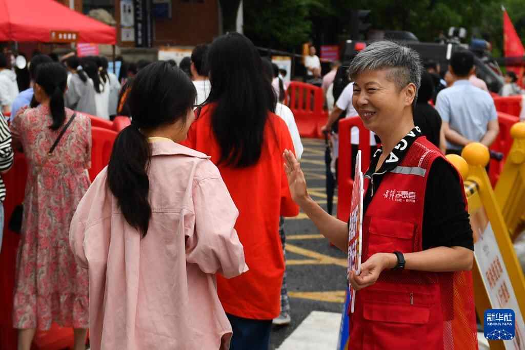 2025年全国高考期间,湖南省长沙市天心区组织青年志愿者,在多个考点为考生和家长提供便利服务。