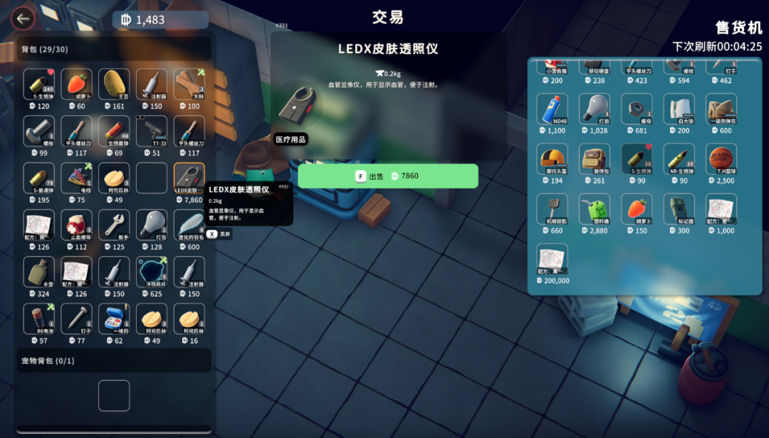 最开始玩《逃离鸭科夫》我偏鼠鼠党,以囤货为终极目标,但凡是能带回家的一个不落,享受那种在一堆未知中突现“超高价值物资”的惊喜感——它学习了塔科夫的设定,并未在游戏局内直接标明物资价值,只能通过基地的售货机来事后检查。