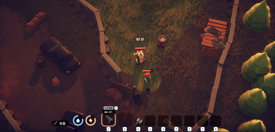 大概玩第三局时,我遇到了首次“死亡”。当时为了做某个任务要走得远一些,带着有几十发子弹储备手枪的我信心满满,结果惊动了3个手持砍刀、移动速度极快的“暴走拾荒者”,它们一起冲过来追杀,我拼手速反应努力打掉了两个,却还是被最后一个打空了血条。