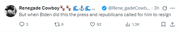 其中一条评论说,“拜登要是做出这种事,福克斯新闻就会一遍又一遍地播放相关片段,好像这和登月一样重大。”