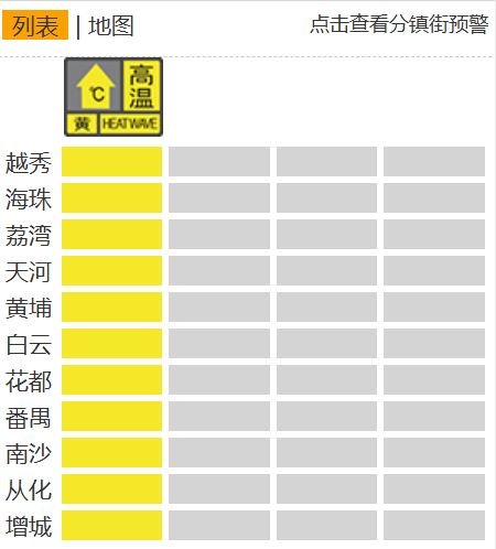 广州11区高温黄色预警生效中