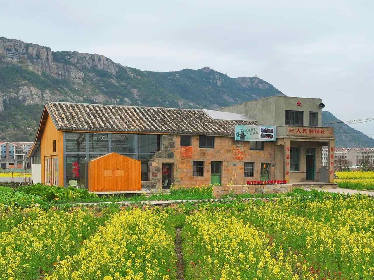 松门镇松建村里,一处老屋格外吸睛——几近倒塌的石墙原汁原味地保留,以玻璃衔接延伸,变身咖啡馆,入驻了非遗手作,还有艺术家常来办展。