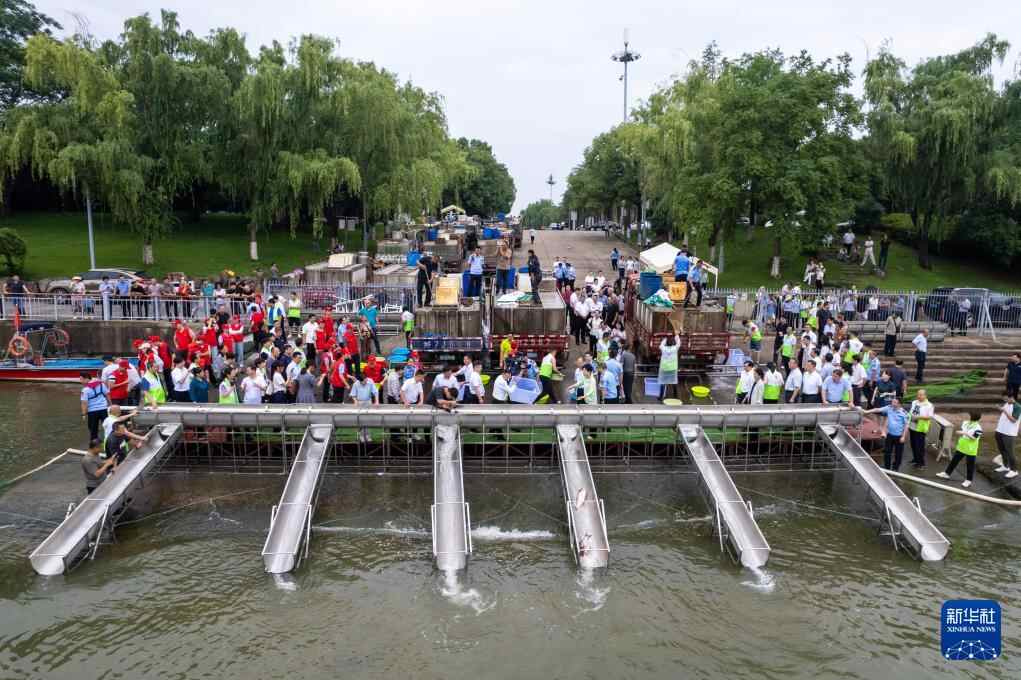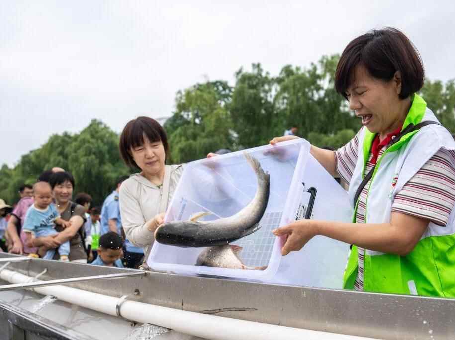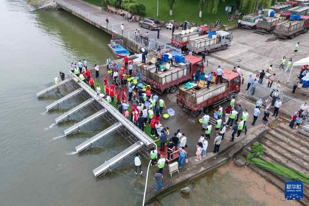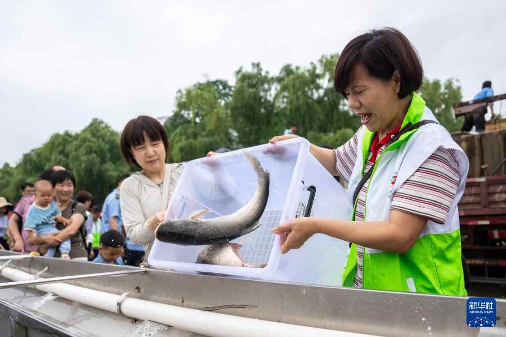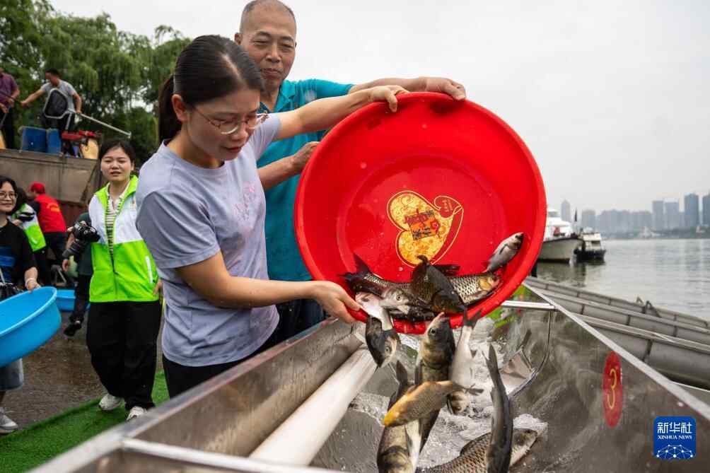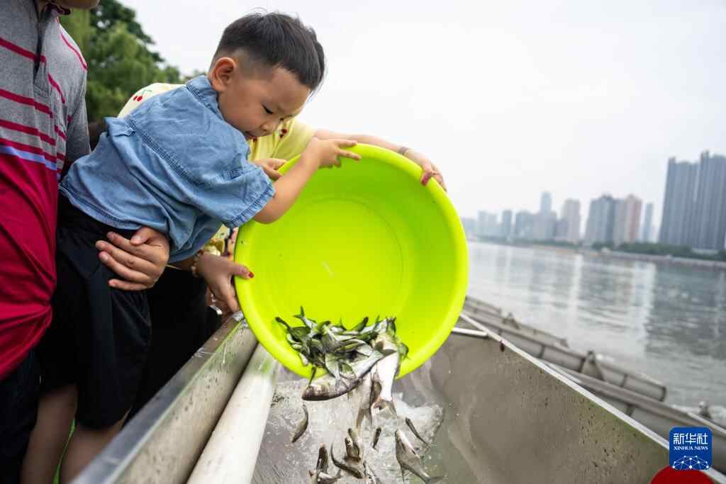 6月9日,人们在长沙橘子洲公园参与放流活动。