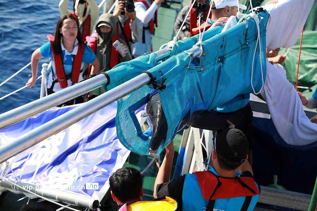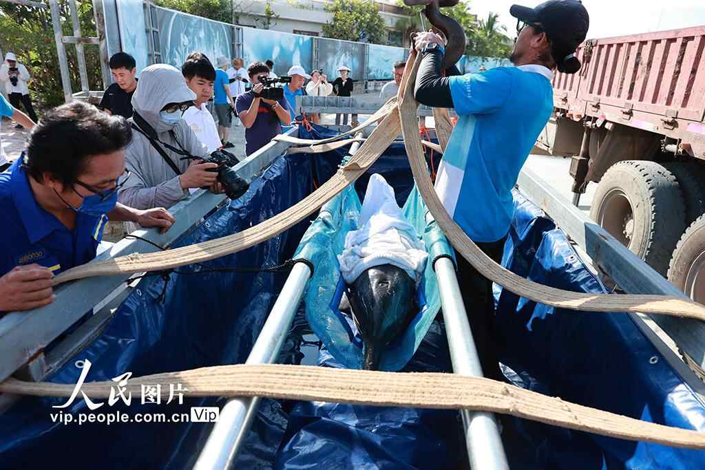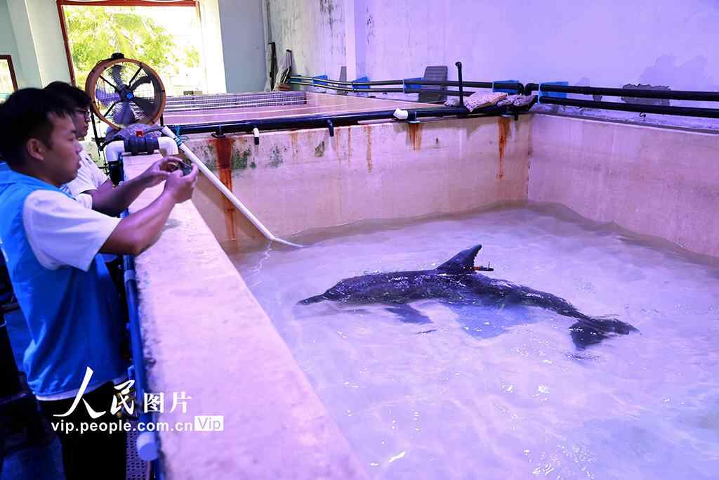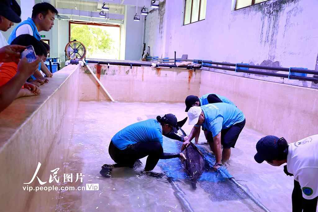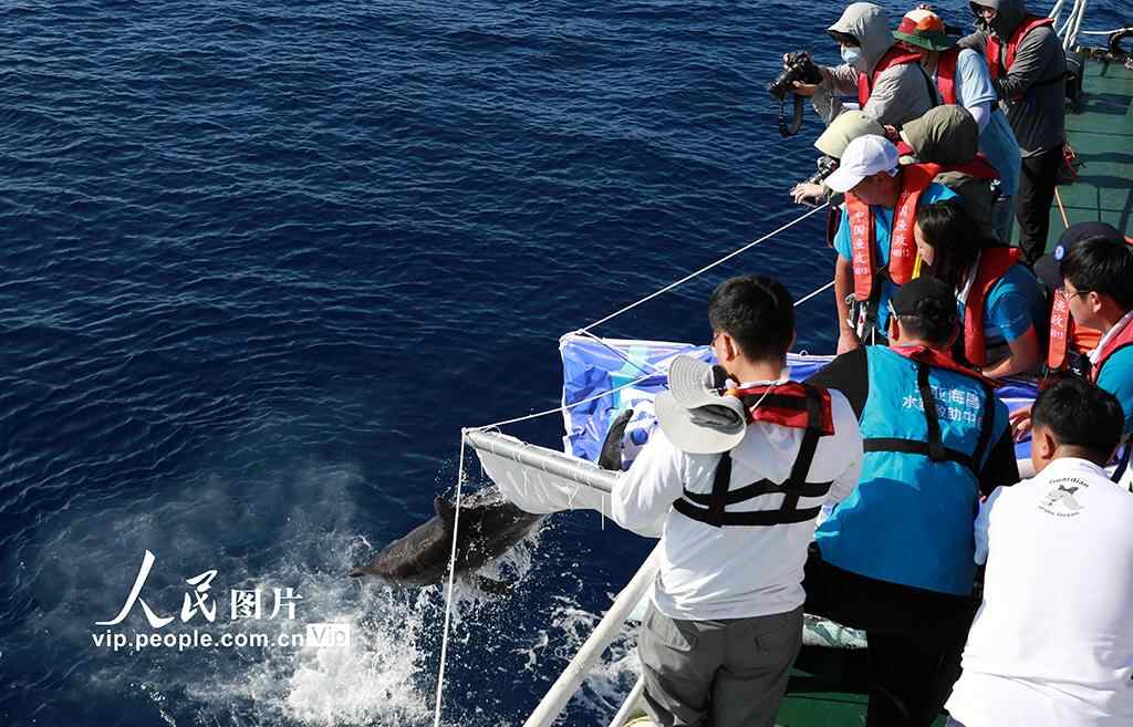 经过一个多月的精心照料与治疗,“阳阳”的身体状况显著恢复。5月30日,经专家团队综合评估,认为“阳阳”已完全具备野外放归条件。6月8日,恰逢世界海洋日,在这个特殊的日子里,“阳阳”被成功放归大海。袁永东摄(人民图片网)