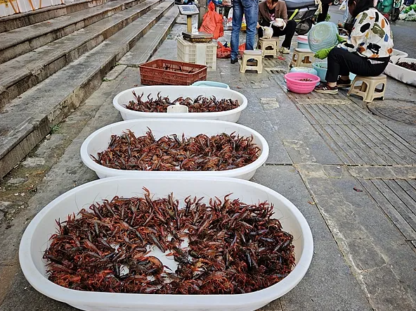5月27日,记者在浙江东日智慧农批物流园现代农贸城了解到,当前市场内的小龙虾批发价格呈现连日走低趋势,与上市初期相比跌幅已近75%,较去年同期跌幅也超三成。温州大南门农贸市场的批发经营户朱女士说:“最近这些天,一天能卖出1000来斤,最便宜的小龙虾价格也就10元/斤。”