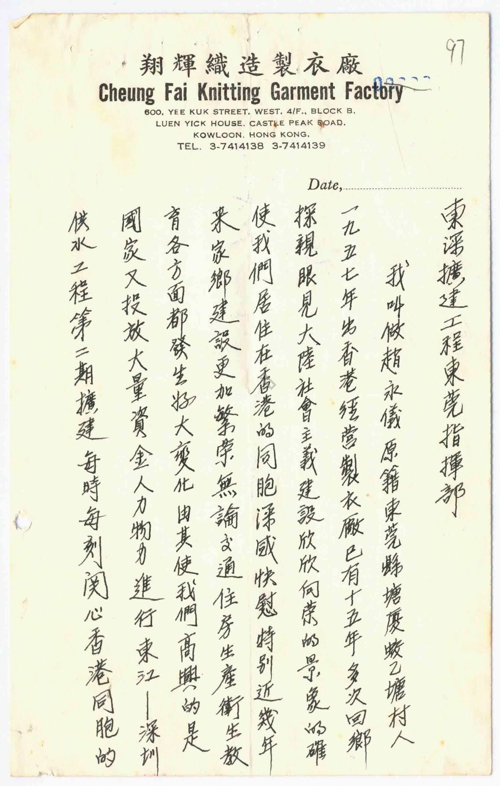 档案还首次披露了三封香港同胞的感谢信,字里行间饱含对内地无私供水的深情致谢,生动诠释了东深供水工程“工程建在两地,情谊留在人心”的深刻内涵。