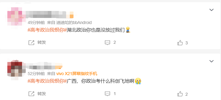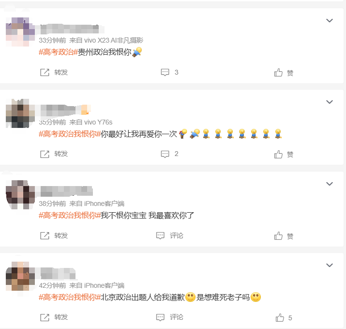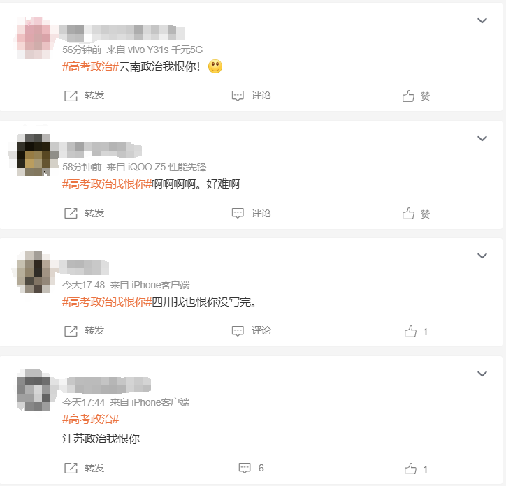 今年高考政治难不难?在社交平台上,全国各地不少网友表示很难,太“恨”了。