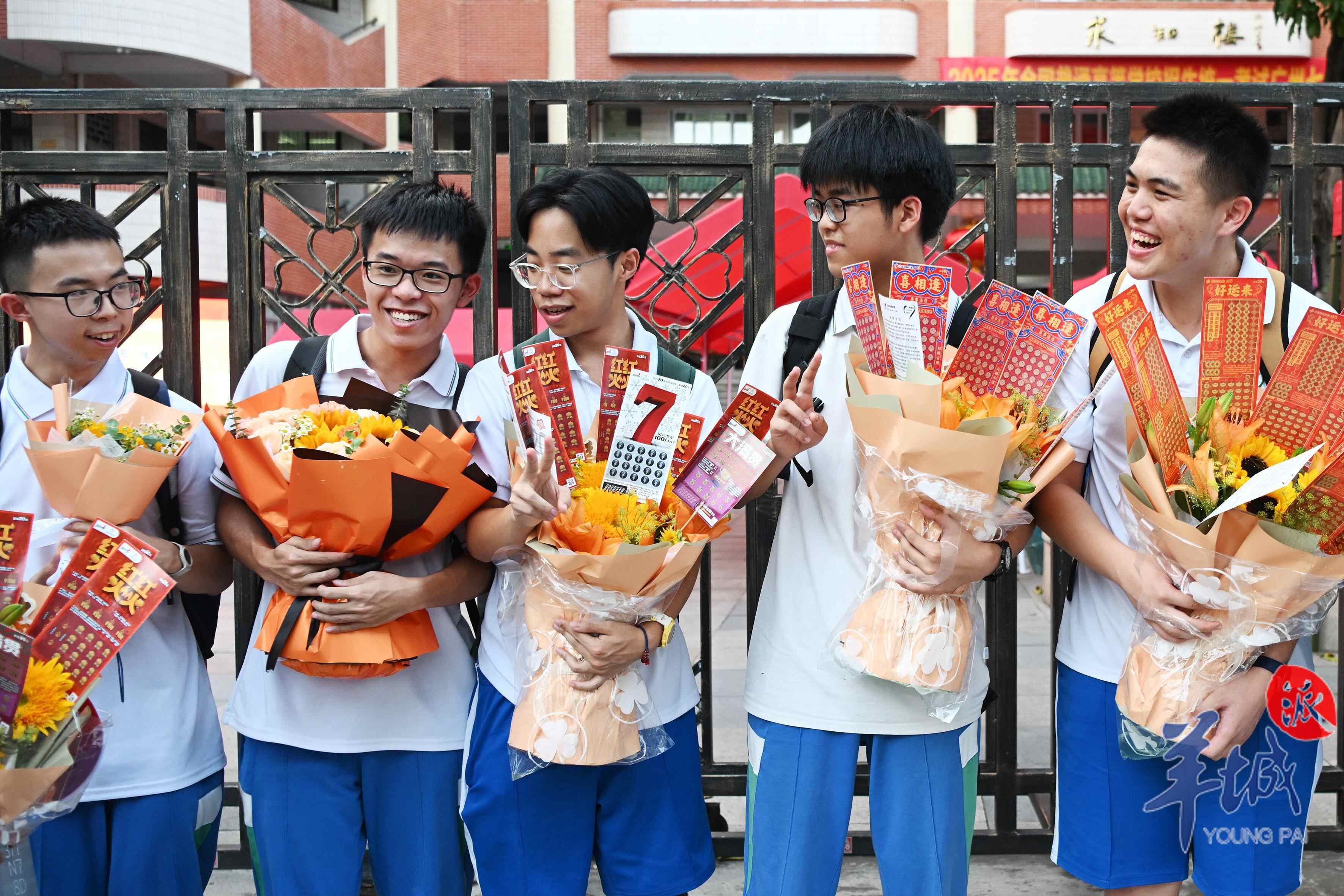 “思想政治的经济大题和哲学大题全部押中了!”9日下午,思想政治考试结束后,广州市第七中学考点外,两名考生兴奋地告诉记者,此次高考思想政治试卷中的题目,和今年5月份学校老师的模拟命题十分相似,所以走出考场后,两人笑得合不拢嘴。