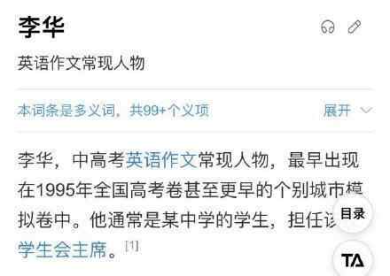 流水的考生,铁打的李华。从1995年开始,李华就成为高考英语作文的常驻主人公, 委托一届又一届考生为他代笔写信。 眨眼间,便走过30年。如今,在百科里,他都是“有头有脸”的人物。 很多人都好奇,永不毕业的李华,今年究竟多大年龄了?