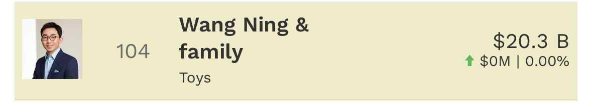 6月8日消息,今天上午,根据福布斯实时富豪榜,泡泡玛特(09992.HK)创始人王宁及其家族排名104位,目前身家为203亿美元,牧原股份(002714.SZ)创始人秦英林身家为163亿美元。王宁已取代秦英林,成为河南新首富。