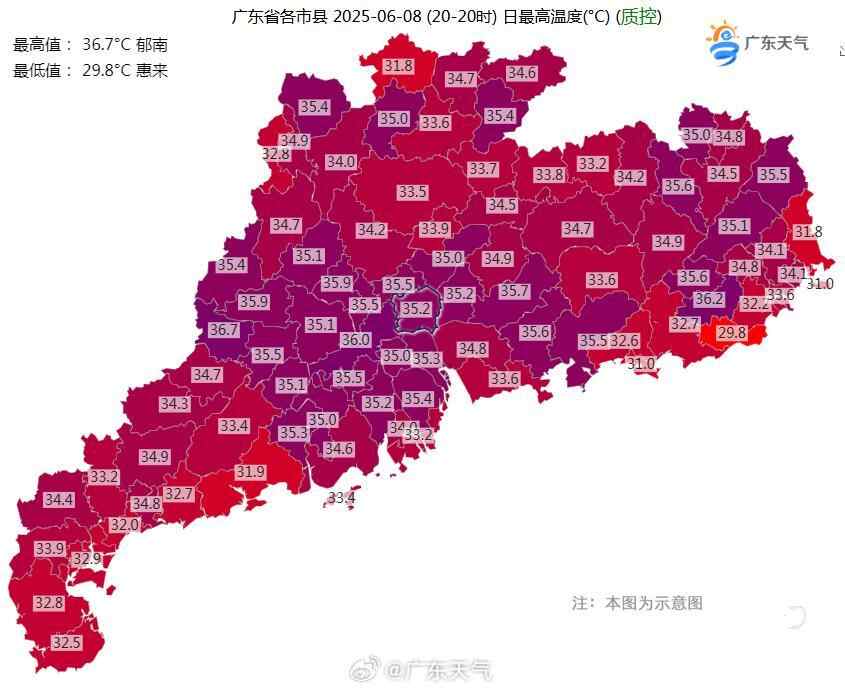 广东的夏天真的来了。昨日,“大鸡腿”热到发紫,郁南以36.7℃站上广东高温榜榜首。