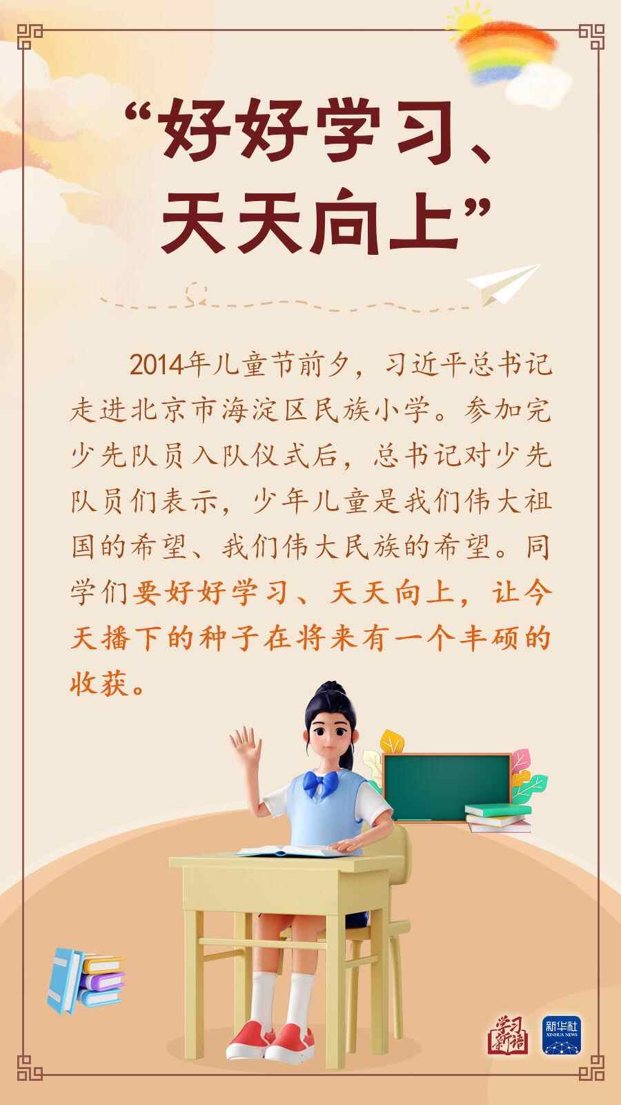 让孩子们成长得更好,习近平总书记始终牵挂于心。本期“学习新语”,我们撷取总书记关心少年儿童健康成长的一些场景,感悟总书记对“祖国花朵”的真挚关怀和殷切期望。