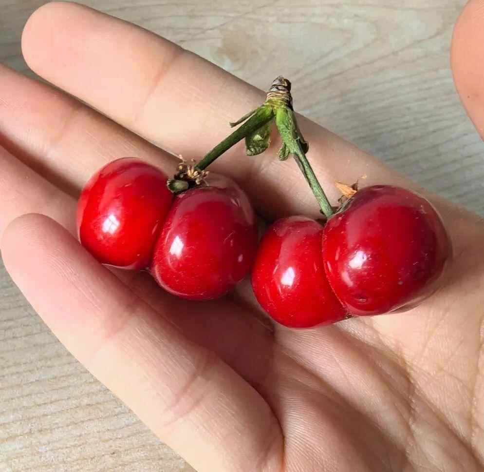 车厘子畸形是由于气温偏高,导致花芽分化过程中,出现多雌蕊的双胞胎果。和膨大剂没关系,可以放心吃。