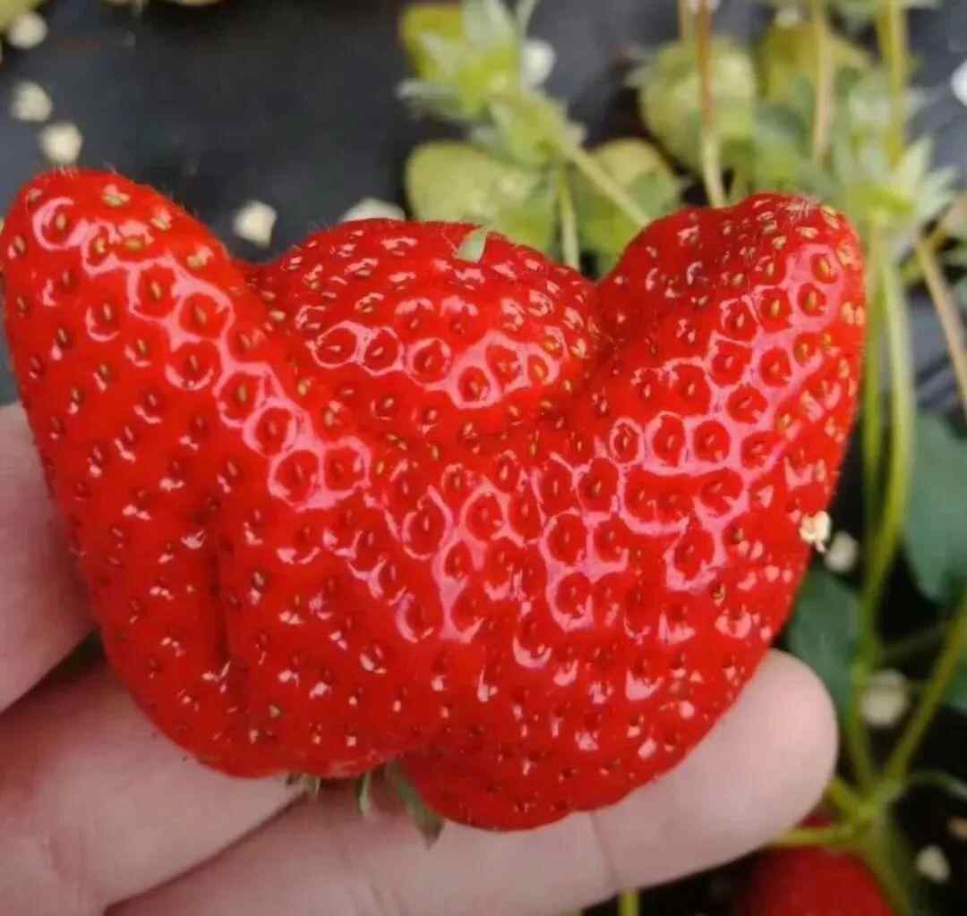 如果草莓在开花的时候,部分授粉受精不正常,就会形成不规则的畸形果。这种草莓除了丑没有别的缺点。
